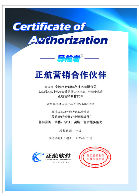 国家高新技术企业、宁波鄞州区企业工程(技术)中心、正航软件优秀代理商、浪潮软件优秀合作伙伴、20余项软件著作权证书、 浙江省科技型中小企业证书等多项认证
