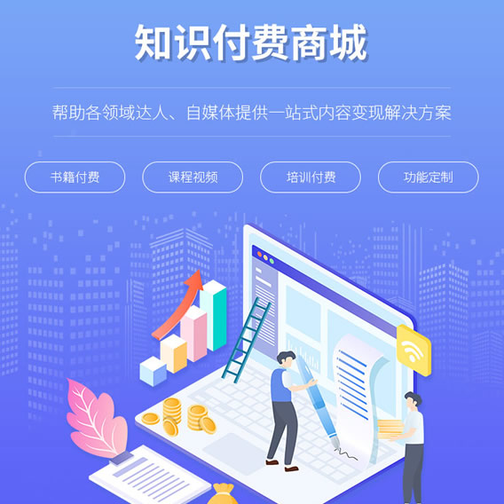 知识付费商城,从“有价值的免费内容”到“知识产品”再到“付费商品”的全面升级,为企业打造 内容沉淀、营销变现、用户管理的知识付费生态闭环,通过书籍付费、在线付费课程视频、音频、图文、 培训付费等多种形式,结合营销推广、专栏专题、课程推荐等方式助力内容营销,快速实现内容变现。