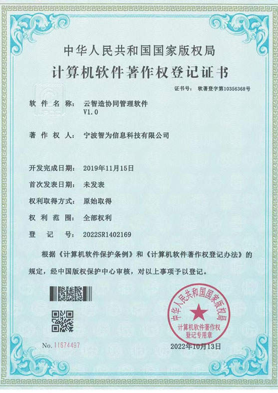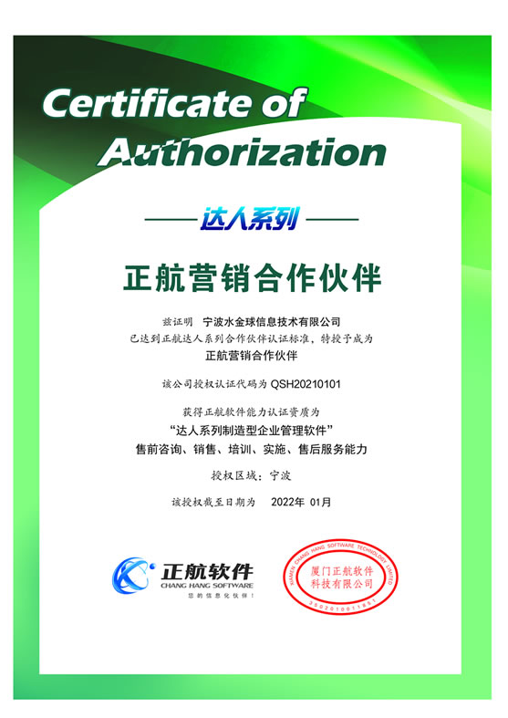 国家高新技术企业、宁波鄞州区企业工程(技术)中心、正航软件优秀代理商、浪潮软件优秀合作伙伴、20余项软件著作权证书、 浙江省科技型中小企业证书等多项认证